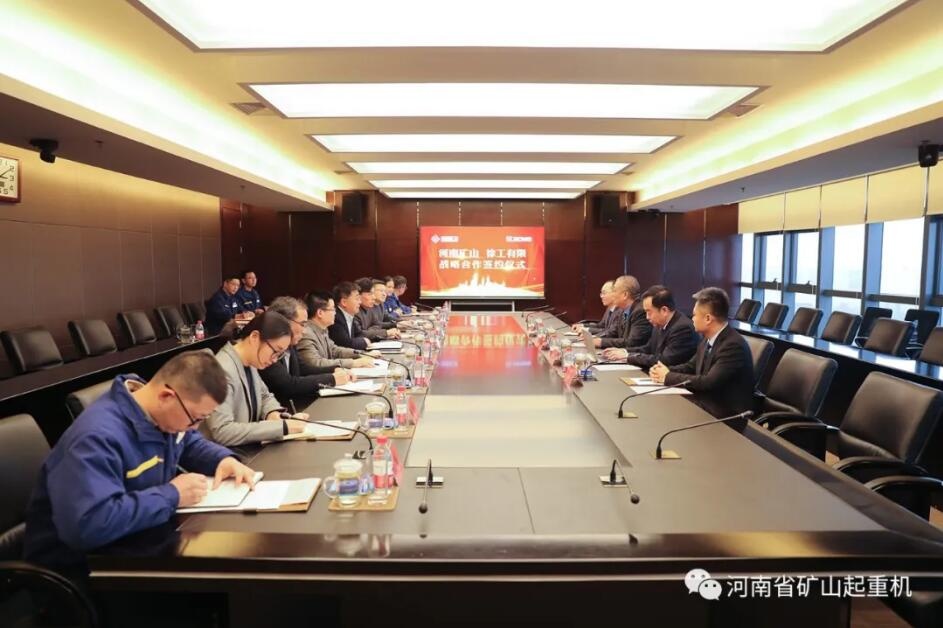 杨东升总经理*先欢迎崔培军书记一行来访徐工集团,感谢河南矿山一直以来给予徐工集团的关心与支持,祝贺河南矿山荣获徐工有限战略合作供应商中的*秀供应商。他表示,河南矿山二十年来专注致力于各类起重装备研发生产制造,取得了辉煌业绩,**是河南矿山的孝文化建设和专注起重机实业的精神,值得徐工人学习和借鉴。在长期稳定的合作中,河南矿山高质量的起重机产品广泛应用于徐工集团,为徐工向智能制造转型升级提供了强大的技术和装备支撑。期望此次战略签约,再次夯实双方科技、安*、质量、服务等方面的深度合作,实现优势互补、产业互助、共赢发展。