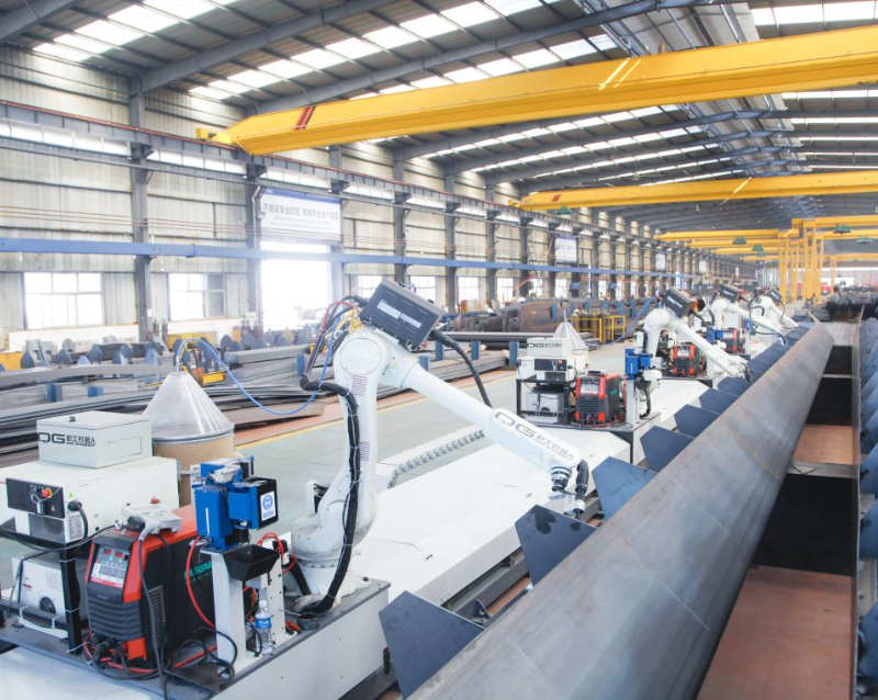 The single-beam main beam robot workstation boosts production, reducing time by 40% and delivery cycles by 50%. Since 2016, automated welding lines have enhanced efficiency for single-beam standard products.